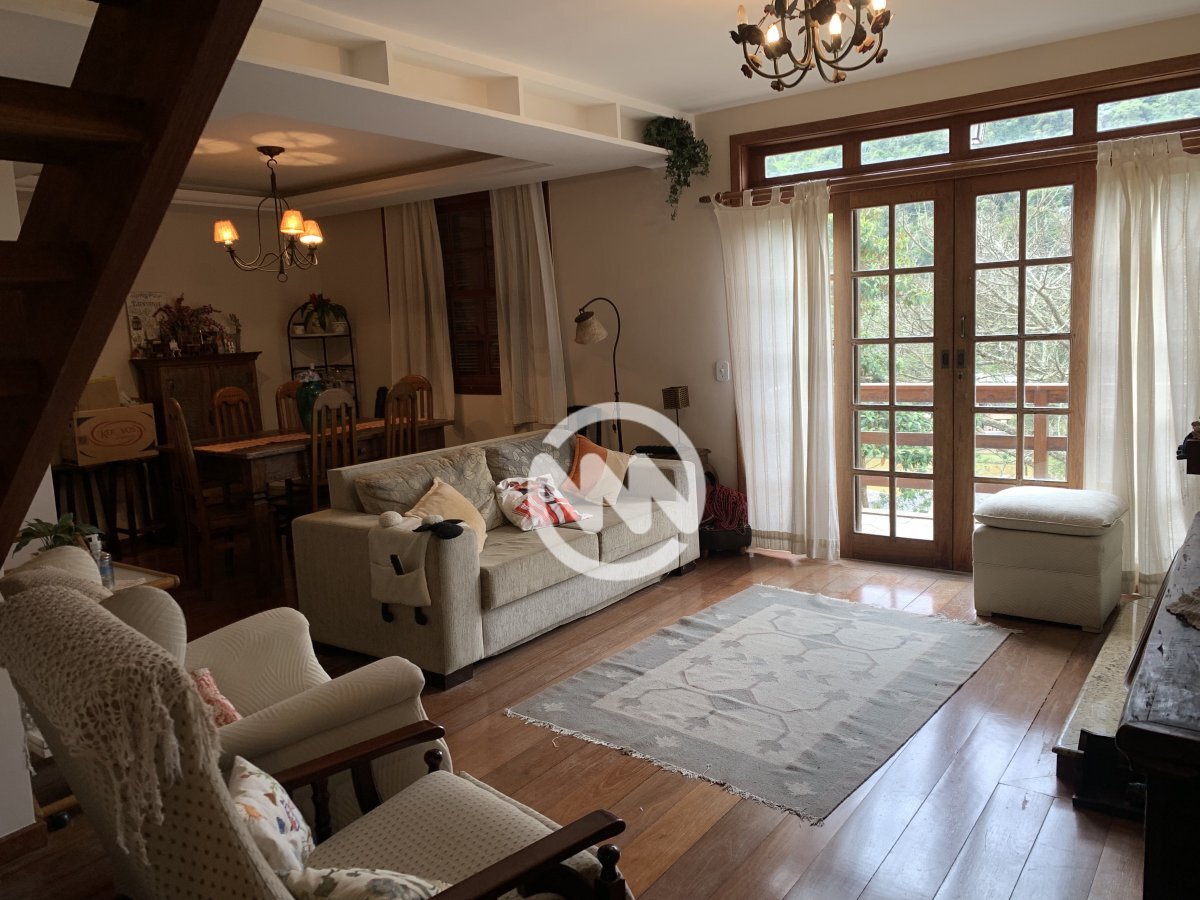 A cobertura triplex em Albuquerque, Teresópolis com 130 m² com 3 suítes e 4 banheiros (piso todo de madeira).