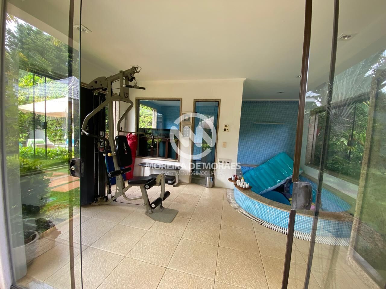 Sistema de câmera, hidromassagem, piscina com cascata, escritório no primeiro piso, 4 suítes no segundo piso, terceiro piso é uma sala de cinema com capacidade para 12 poltronas de cinema, projetor, com banheiro e mini cozinha.