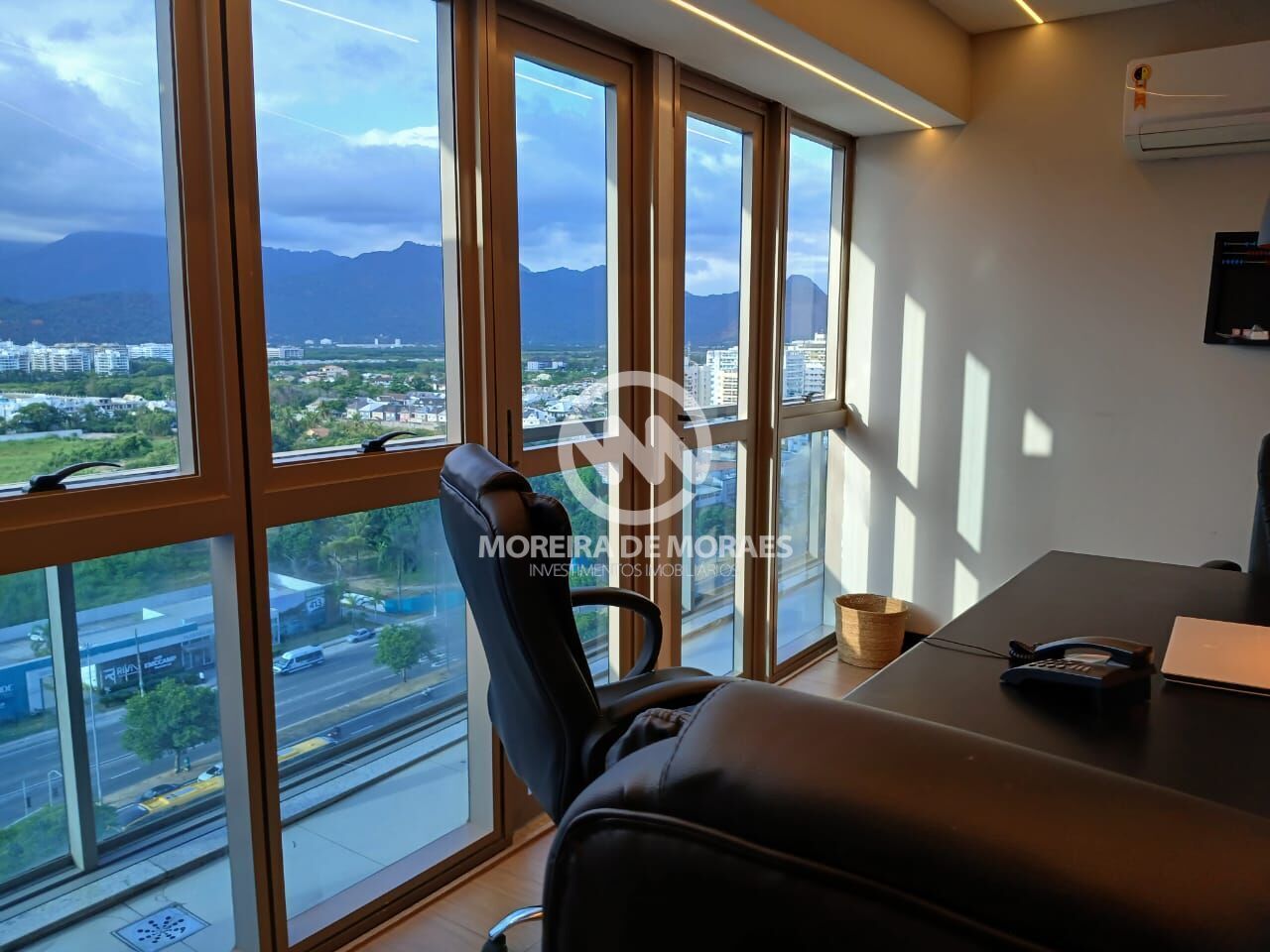 Com 200 m2, é a junção de 5 salas, andar alto, vista magnífica para Pedra da Gávea e para o mar, sol da manhã, completamente mobiliada, Sistema de som individual, por sala, Sala de Presidente com banheiro completo e vista para o mar, piso em porcelanato, toda com ar, sendo do tipo splits nas salas menores e K7 de 42.000 BTUS nas salas maiores (total de 7 máquinas), 5 vagas na garagem, pronto para entrar e começar a operar o seu negócio.
