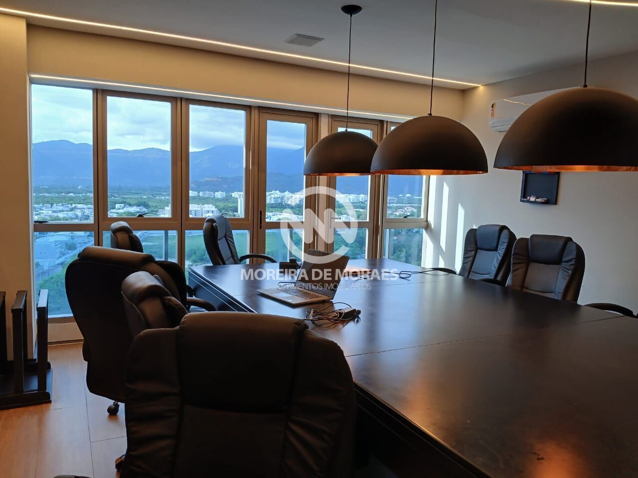 Finamente decorada e equipada, com projeto de iluminação, composta de recepção, cozinha, circulação, ampla sala de conveniência com 4 estações de trabalho, mais 4 salas privativas e 03 banheiros.